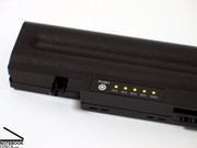 Am Akku findet man auch eine LED Ladestandanzeige, die sich durch einen leichten Druck aktivieren lässt, und so die verfügbare Restkapazität in 20% Schritten anzeigt ohne das Notebook dabei einschalten zu müssen.