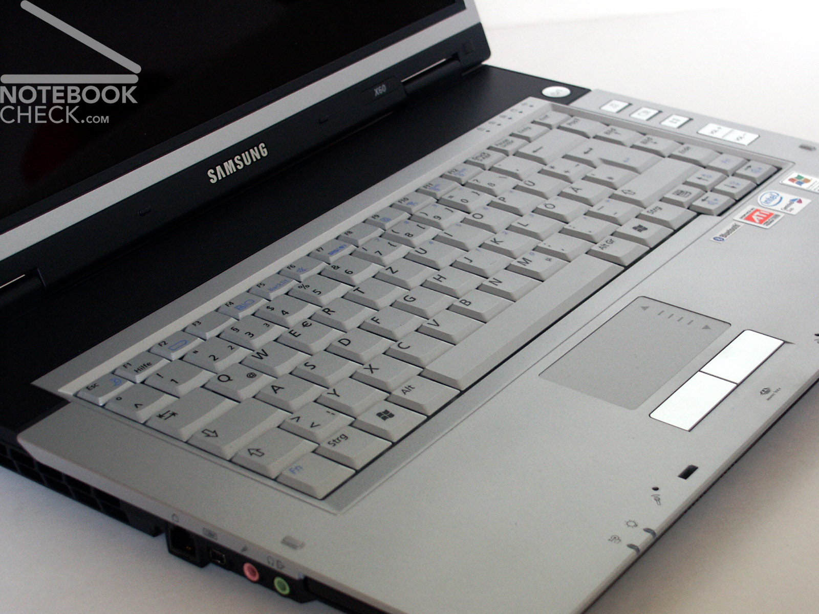 Eine klare Linienführung und ein kantiges Design prägen das Erscheinungsbild des Samsung X60. Ein für das Auge angenehmes Wechselspiel zwischen Silber und Schwarz wird mit der Handballenauflage aus Kunststoff und der Gehäusewanne aus Metall vollzogen.
