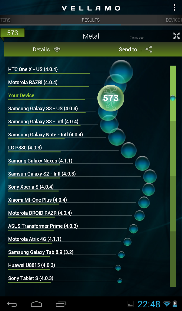 Der verwendete Flashspeicher macht einen guten Eindruck, zwar könnten seine Leseeigenschaften besser sein, doch dafür glänzt er bei seinen Schreibfähigkeiten. Für einen vergleichsweise günstigen SoC macht das Saphir somit eine gute Figur und kann durchaus überzeugen. Zwar kann es einem Leistungsboliden wie dem Nexus 7 nicht das Wasser reichen, doch genügt die Leistung für alle gängigen Anwendungen.