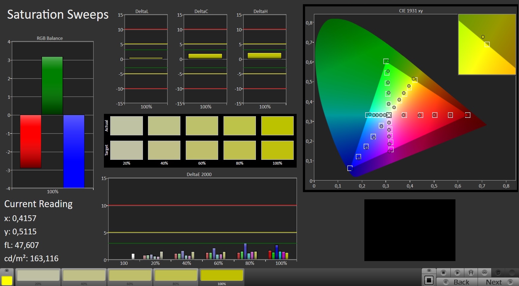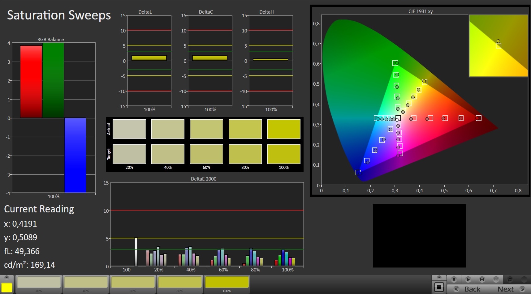 | Delta E Graustufen * | 2.88 | 4.39 -52% | 0.69 76% | 1.58 45% | 6.44 -124% |