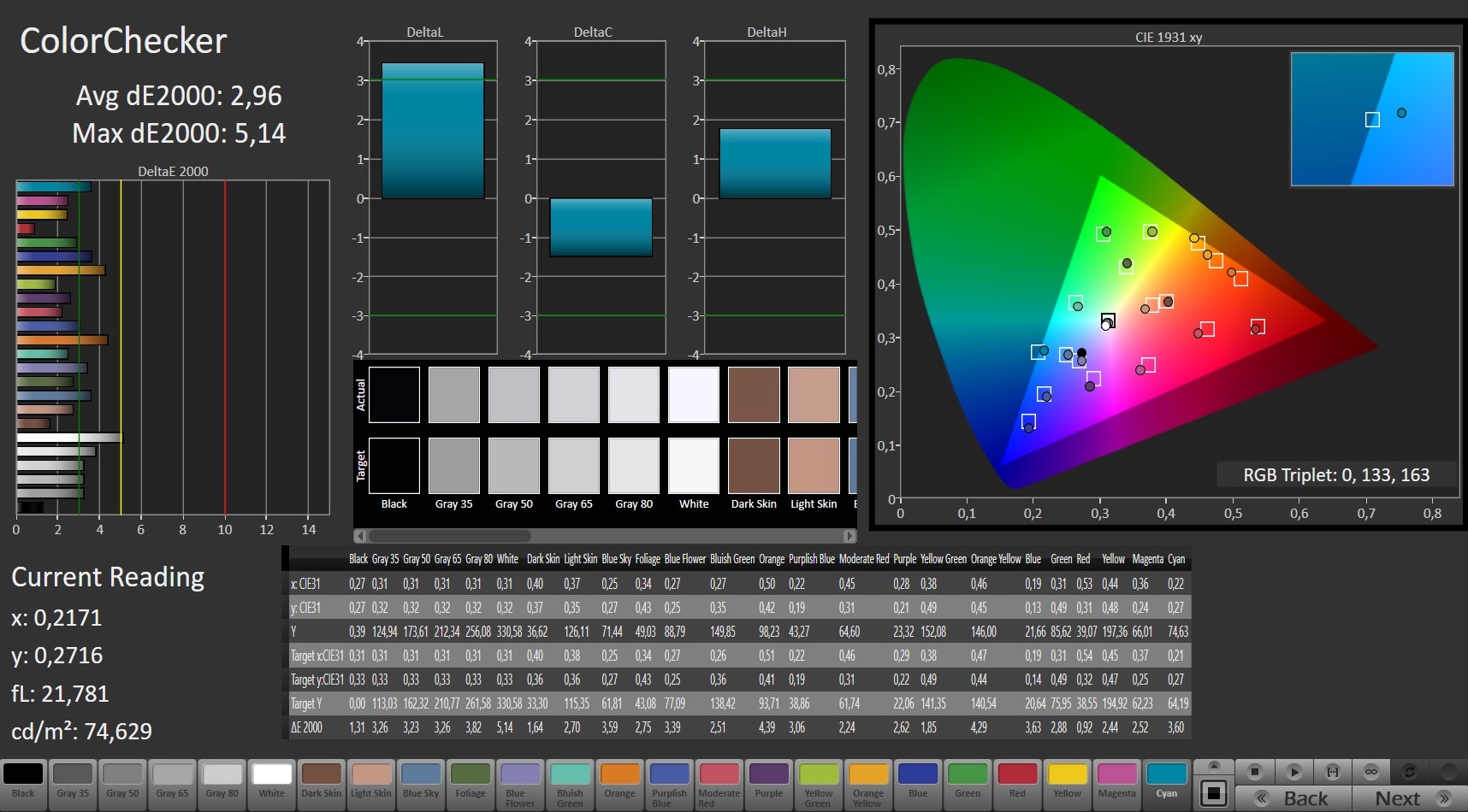 ΔE ColorChecker Calman: 2.96 | ∀{0.5-29.43 Ø4.78}