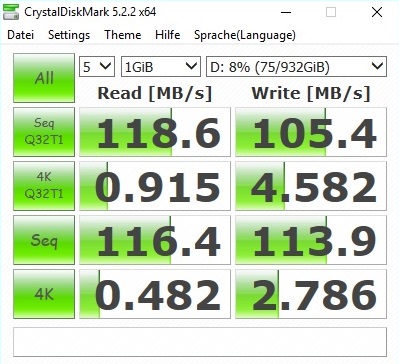 Um genügend Platz für größere Spiel- und Filmsammlungen zu haben, drängt sich als sekundärer Massenspeicher eine HDD auf. In unserem Fall war ein 1-TB-Drive von Seagate mit 5.400 U/Min an Bord.