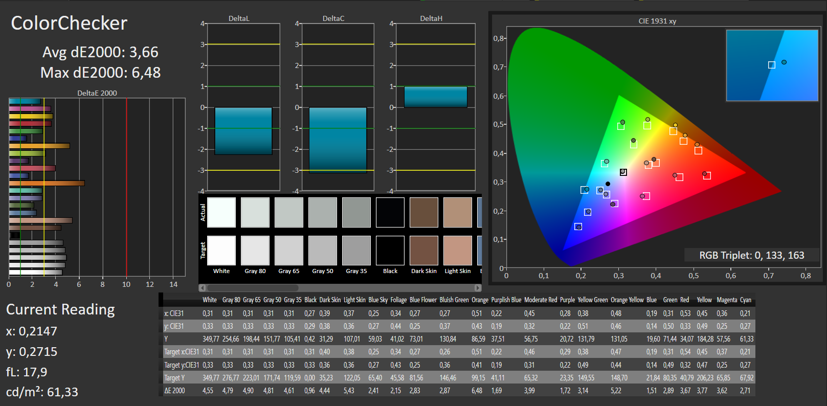 ΔE ColorChecker Calman: 3.66 | ∀{0.5-29.43 Ø4.78}