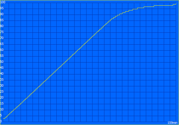 Die Energieaufnahme des Systems beträgt im Leerlauf 7,2 bis 12,6 Watt. Damit entspricht der gemessene Verbrauch dem vergleichbarer Geräte. Kurzzeitig gönnt sich das Slim 15 jedoch auch bis zu 45,5 Watt. Das übersteigt die Leistung des mitgelieferten Netzteils (maximal 40 Watt). Im weiteren Verlauf pendelt sich der Verbrauch unter Last jedoch bei 37 Watt ein. Das Netzteil ist relativ knapp dimensioniert, sollte aber im Alltag ausreichend Energie zur Verfügung stellen. Unter Volllast konnten wir ein Entladen des Akkus nicht feststellen.
