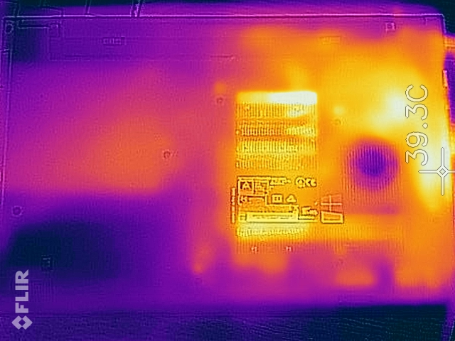 Unter Last erwärmt sich das Gehäuse spürbar auf der linken Seite. Mit 41,8 °C notieren wir den wärmsten Punkt auf der Unterseite im hinteren Bereich. Im Vergleich bietet nur das Lenovo ThinkPad L570 deutlich kühlere Gehäusetemperaturen.