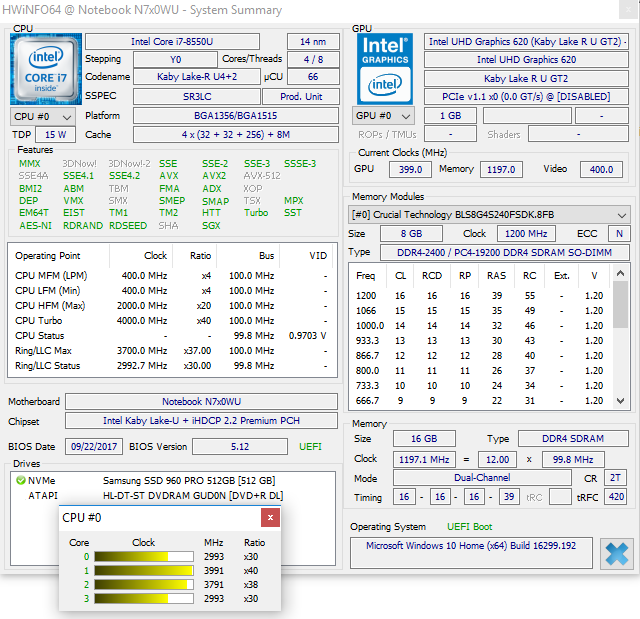 | Schenker Slim 15 L17 UHD Graphics 620, i5-8550U, Samsung SSD 960 Pro 512 GB m.2 | Dell Inspiron 15 7570 GeForce 940MX, i5-8550U, Samsung PM961 NVMe MZVLW512HMJP | HP EliteBook 755 G4 Radeon R7 (Bristol Ridge), PRO A12-9800B, Samsung PM961 MZVLW256HEHP | Lenovo Thinkpad L570 20J9S01600 HD Graphics 620, i5-7200U, Samsung PM961 NVMe MZVLW512HMJP | Fujitsu LifeBook U757 HD Graphics 620, i5-7200U, Samsung CM871a MZNTY256HDHP | |