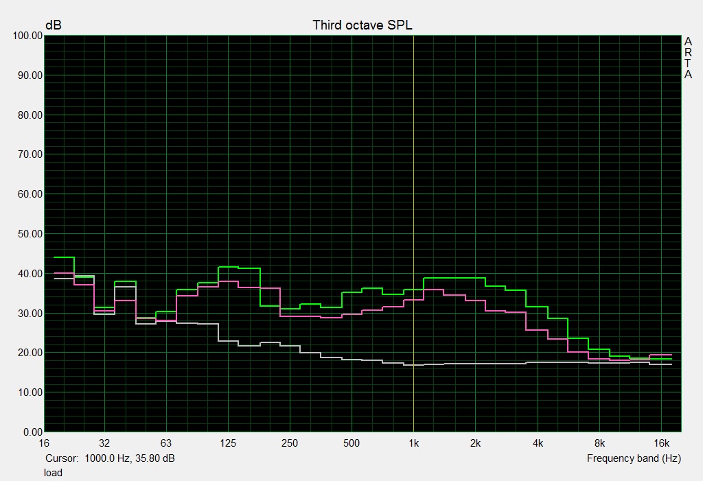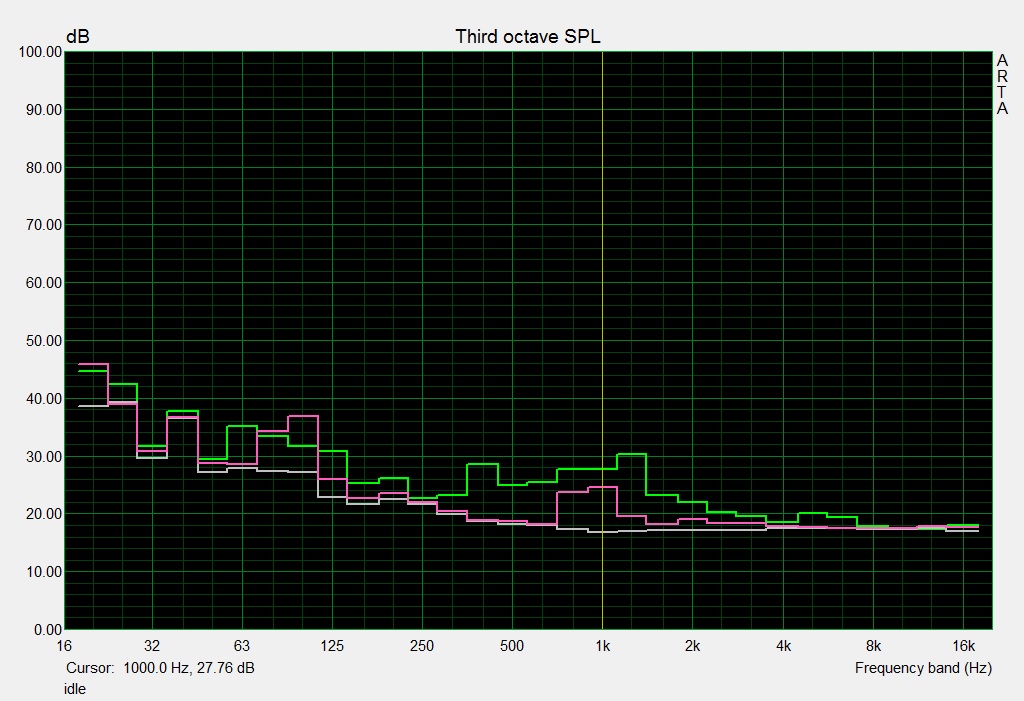 | Idle avg * (dB) | 32 | 32 -0% | 36 -13% | 31.6 1% | 32.5 -2% |