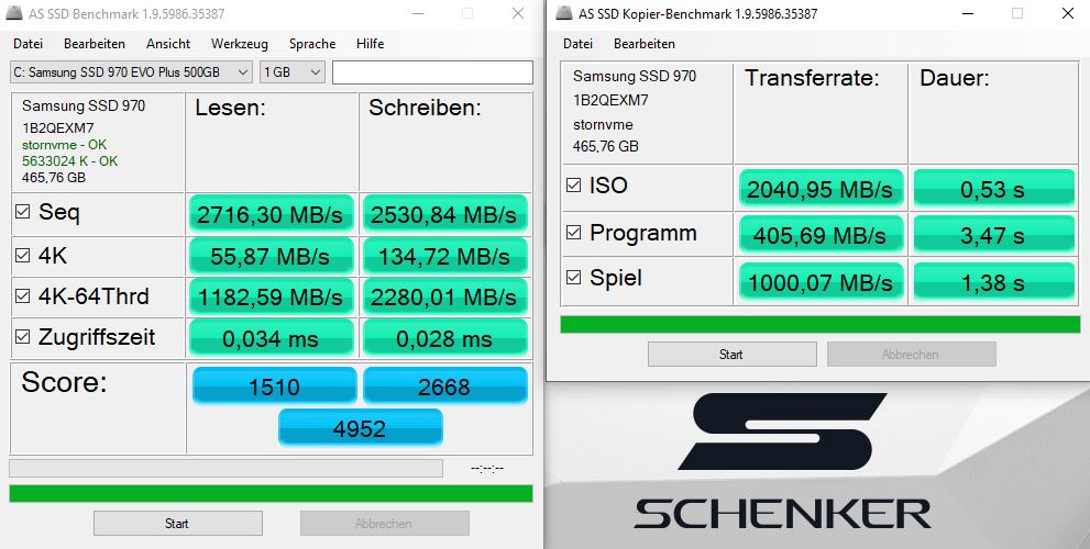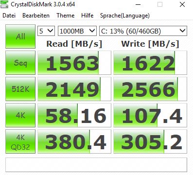 | Schenker Work 15 UHD Graphics 630, i7-8750H, Samsung SSD 970 EVO Plus 500GB | HP ProBook 450 G6-5TJ93EA GeForce MX130, i7-8565U, Samsung SSD PM981 MZVLB512HAJQ | Lenovo ThinkPad T580-20L9001AUS UHD Graphics 620, i7-8650U, Samsung SSD PM981 MZVLB512HAJQ | Fujitsu Lifebook E558 E5580MP581DE UHD Graphics 620, i5-8250U, Micron 1100 MTFDDAV256TBN | Dell Latitude 5590 UHD Graphics 620, i5-8250U, SK hynix SC311 M.2 | |