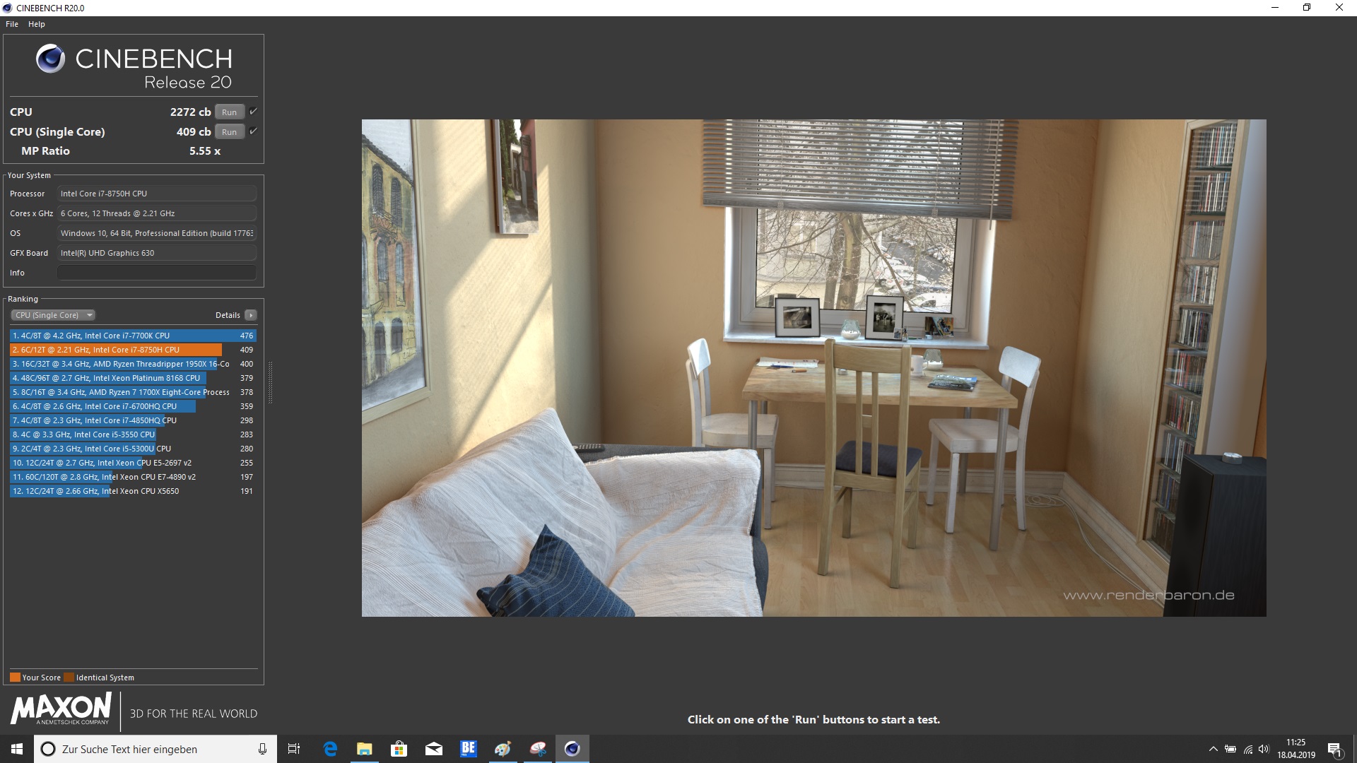| Durchschnittliche Intel Core i7-8750H (7.56 - 9.55, n=5) | |
