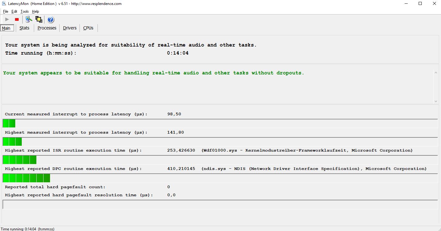 Die verbaute Hardware ist gut aufeinander abgestimmt und auch die Treiber arbeiten sehr gut zusammen. Wir konnten bei unserem Testgerät keine erhöhten DPC-Latenzen messen.