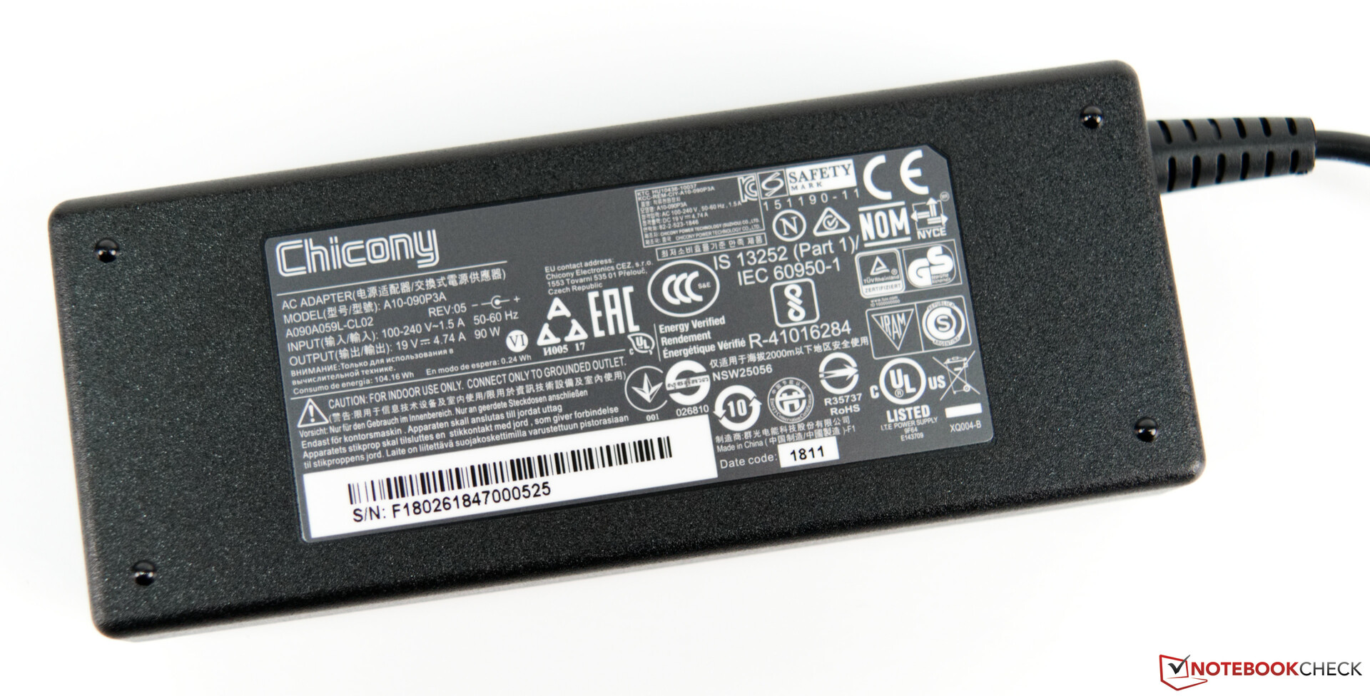 Das Netzteil kann maximal 90 Watt zur Verfügung stellen, was für das Schenker Work 15 völlig ausreichend ist. Ein Entladen des Akkus beim Stresstest war nicht gegeben.