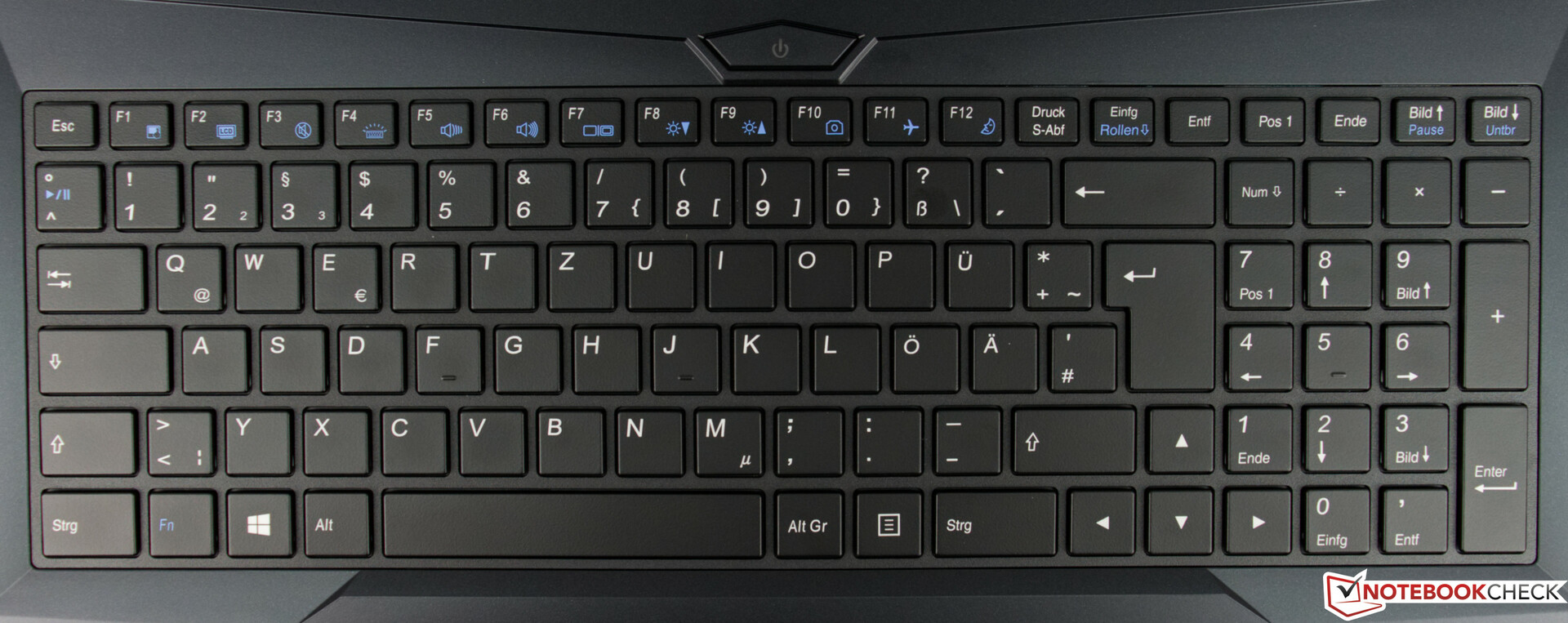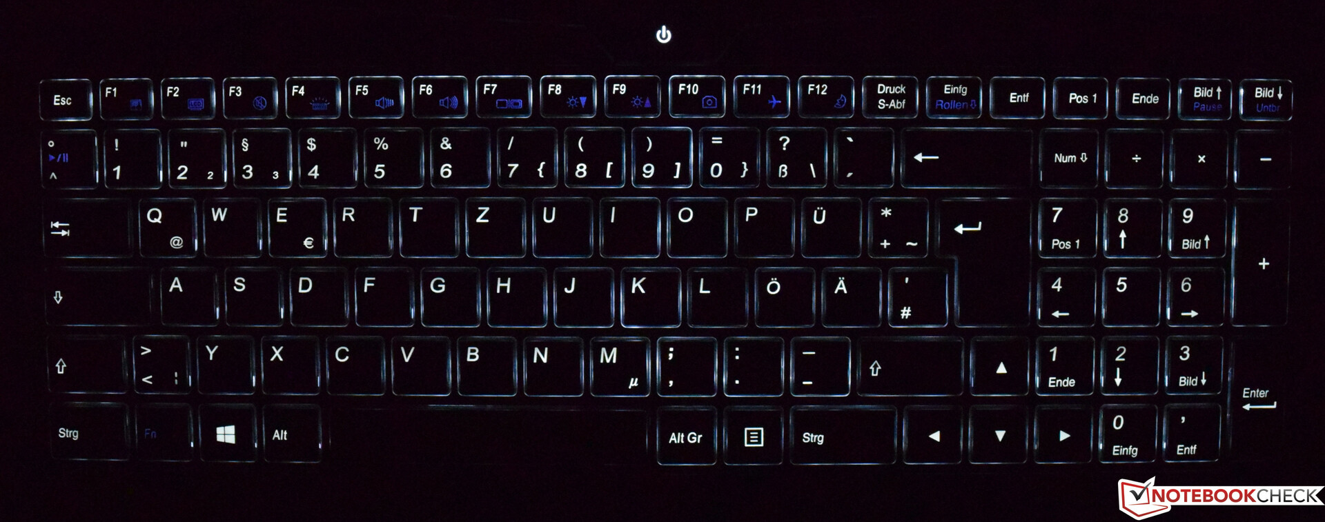 Schon vorweg können wir festhalten, dass Lenovo mit dem ThinkPad T580 die besten Eingabegeräte besitzt. Da kommt auch das Schenker Work 15 mit seiner 6-Zeilen-Chiclet-Tastatur nicht heran. Diese bietet zwar ein gutes Feedback beim Tippen, jedoch könnte dieser noch etwas knackiger ausfallen. Als schwammig kann der leicht gedämpfte Anschlag aber nicht gewertet werden. Gut gefällt uns das Layout mit den einheitlich großen Tasten, was vor allem die Pfeiltasten und den Ziffernblock mit einschließt. Von Vorteil ist natürlich auch die kontrastreiche Aufschrift, was das Ablesen deutlich erleichtert. Im Übrigen bietet das Schenker Work 15 eine 5-stufige weiße Hintergrundbeleuchtung.