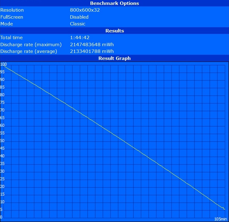 Die Kombination aus Nvidias Optimus-Technik und der brauchbaren Akkukapazität (62 Wh) garantiert anständige Laufzeiten. Im Reader's Test des Battery Eaters, der ein Textdokument durchscrollt, kam das XMG A505 bei minimaler Leuchtkraft auf knapp 6 Stunden. Rund 3,5 Stunden Internetsurfen bzw. HD-Videos sind auch nicht von schlechten Eltern. Selbst bei hoher Last und maximaler Leuchtkraft schlägt sich das Gerät wacker. Der Classic Test von Battery Eater wurde 105 Minuten angezeigt.