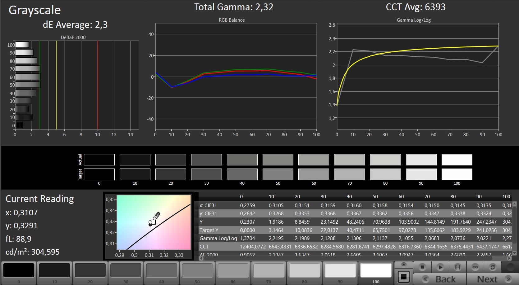 ΔE Greyscale Calman: 2.3 | ∀{0.09-98 Ø5}