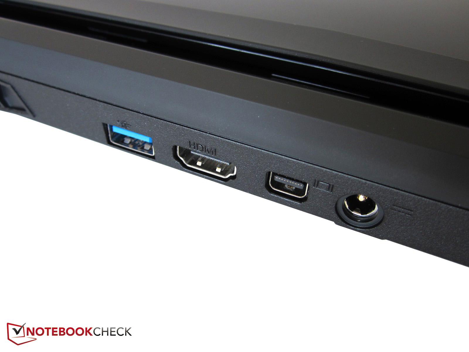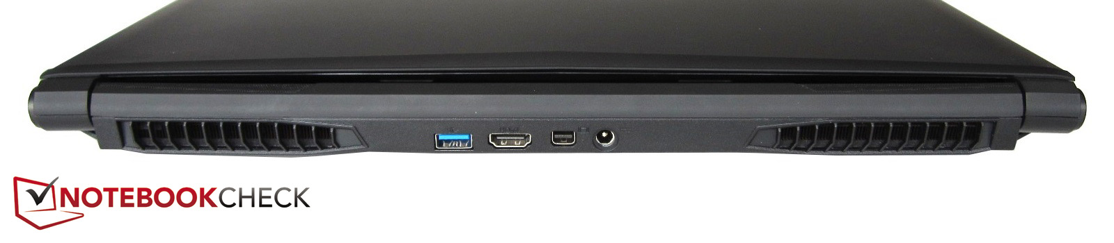 Respekt gebührt dem Barebone-Experten für die Anschlussanordnung. Wie beim W355SS sitzen alle Schnittstellen in der hinteren Gehäusehälfte. Dadurch wird nicht nur die seitliche Bewegungsfreiheit erhöht, sondern auch die Gefahr von Mauskollisionen verringert. Um über den gestrichenen eSATA-Port hinwegzutrösten, verbaut Clevo jetzt einen SIM-Kartenslot und einen Mini-DisplayPort. Alternativ können externe Monitore per VGA oder HDMI angeschlossen werden.