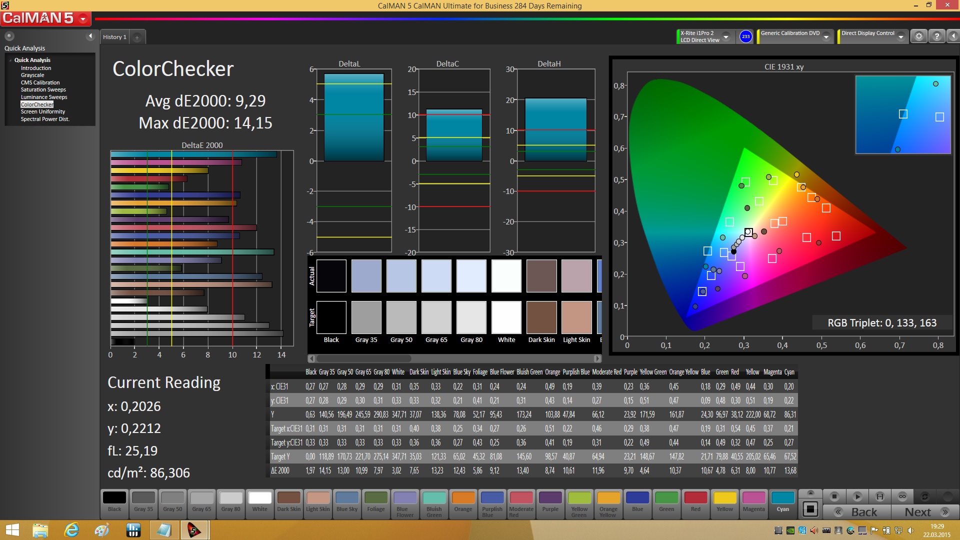 ΔE ColorChecker Calman: 9.29 | ∀{0.5-29.43 Ø4.78}