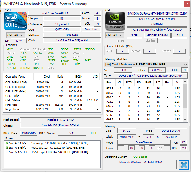 | Schenker XMG A706 6700HQ, GeForce GTX 960M | Schenker XMG A705 4720HQ, GeForce GTX 960M | MSI GE72-2QDi716H11 4720HQ, GeForce GTX 960M | Acer Aspire V 17 Nitro (VN7-791G-759Q) 4710HQ, GeForce GTX 860M | Asus GL771JM 4710HQ, GeForce GTX 860M | MSI GP72-2QEi781 5700HQ, GeForce GTX 950M | |
