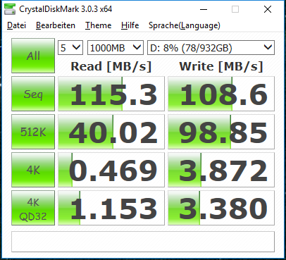 Wirklich schnell ist der mit unserer Referenz-Speicherkarte Toshiba Exceria Pro SDXC 64 GB UHS-II gemessene Datendurchsatz nur beim MSI, dessen Kartenleser über PCIe angebunden ist, während sich das Testgerät und die anderen Mitbewerber mit mittelmäßigem USB-3.0-Tempo zufrieden geben müssen und damit unter den Gesamtdurchschnitt landen.