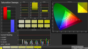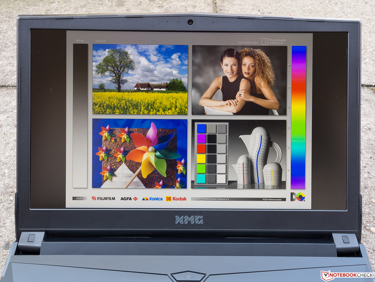 Die Farbdarstellung des XMG Apex 15 ist bereits ohne Profilierung und Kalibrierung (Werkszustand) nahe an der Norm und zeigt auch keinen sichtbaren Farbstich. Delta-E-Werte von 3 oder weniger beschreiben Abweichungen, die für das menschliche Auge nicht mehr erkennbar sind. Am deutlichsten verfehlt das Schenker XMG Core 15 diese Messlatte, bleibt aber noch im guten Bereich. Nach erfolgter Profilierung sinken die Delta-E-Werte auf 1,49 (Graustufen) und 2,51 (ColorChecker) ab, Gelb- und Orangetöne bleiben aber überrepräsentiert.