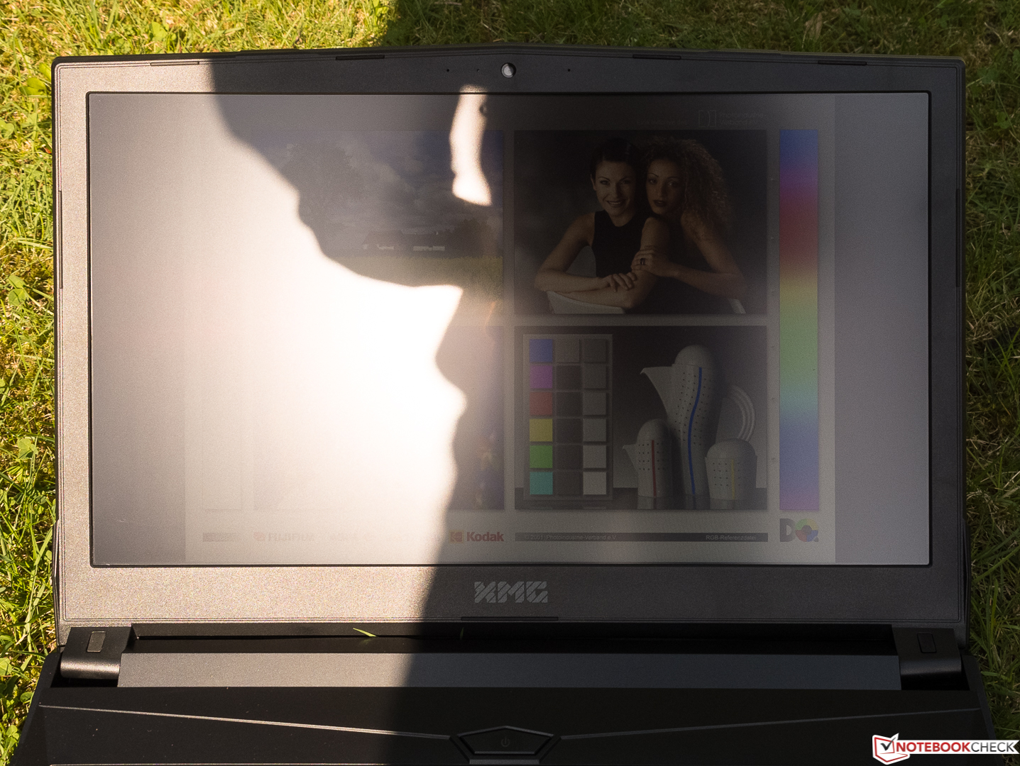 Mit auf die strahlende Sonne gerichtetem Bildschirm (linkes Foto unten) hat das neue Schenker Apex nicht den Hauch einer Chance; rechts auf dem Bild ist die Abschattung durch den Tester zu sehen. Das mittlere Bild haben wir mit seitlichem Lichteinfall aufgenommen, während das rechte eine Idealsituation mit einem Hauseingang im Rücken darstellt. Mit etwas Sorgfalt ist es also auch an einem sonnigen Tag möglich, eine Position zu finden, wo es sich fast ungestört arbeiten lässt.