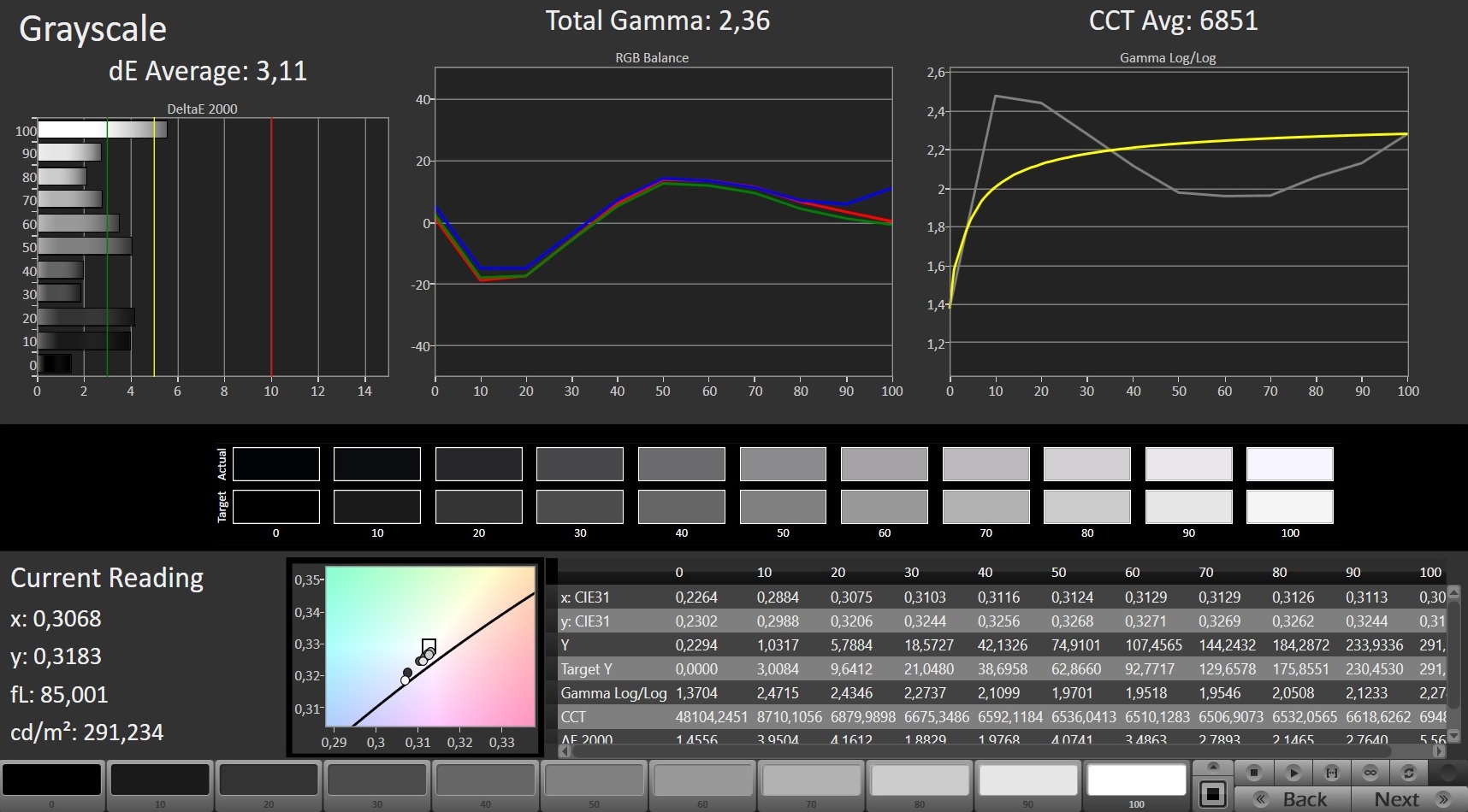 ΔE Greyscale Calman: 3.11 | ∀{0.09-98 Ø5}