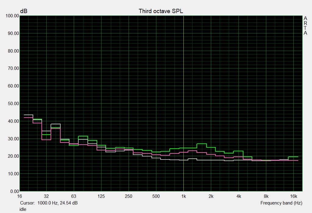 | Idle avg * (dB) | 32 | 34 -6% | 28.8 10% | 32 -0% | 31 3% | 34 -6% | 35 -9% |