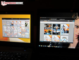 Neben der energieeffizienten GeForce GTX 860M (Nvidia wird zusätzlich eine Kepler-Variante veröffentlichen) gefällt auch das knackscharfe QHD+-Display. Wenn man die reflektierende Oberfläche, den etwas kleinen Farbraum und den mittelprächtigen Schwarzwert ignoriert, punktet das Glare-Modell in fast jeder Disziplin. Hell, kontrastreich und natürlich: So würden wir die Bildwiedergabe zusammenfassen. Jedoch sollte man sich bewusst sein, dass viele Elemente extrem klein dargestellt werden.