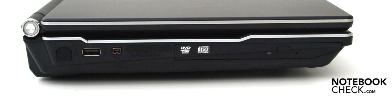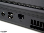 Ebenso können wir uns der Bewertung der Schnittstellenausstattung und -anordnung des Devil 9700 DTX anschließen. Das XMG P500 Pro bietet allerdings unter anderem statt dem 7-in-1 Kartenleser einen 9-in-1 Kartenleser, welcher die Formate MMC, RSMMC, MS, MS Pro. MS Duo, SD, Mini, SD, SDHC und SDXC unterstützt. Zudem steht nun ein USB-3.0 Anschluss zur Verfügung.