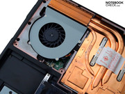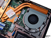 Ein Kühlsystem mit zwei Lüfter, einen für Grafikkarte - einen für den Prozessor, in Kombination mit einem etwas klobigen Design, hilft die Temperatur in Grenzen zu halten. Im Betrieb mit geringer Last bleibt das Gehäuse auch rundherum kühl.