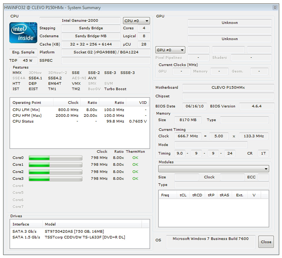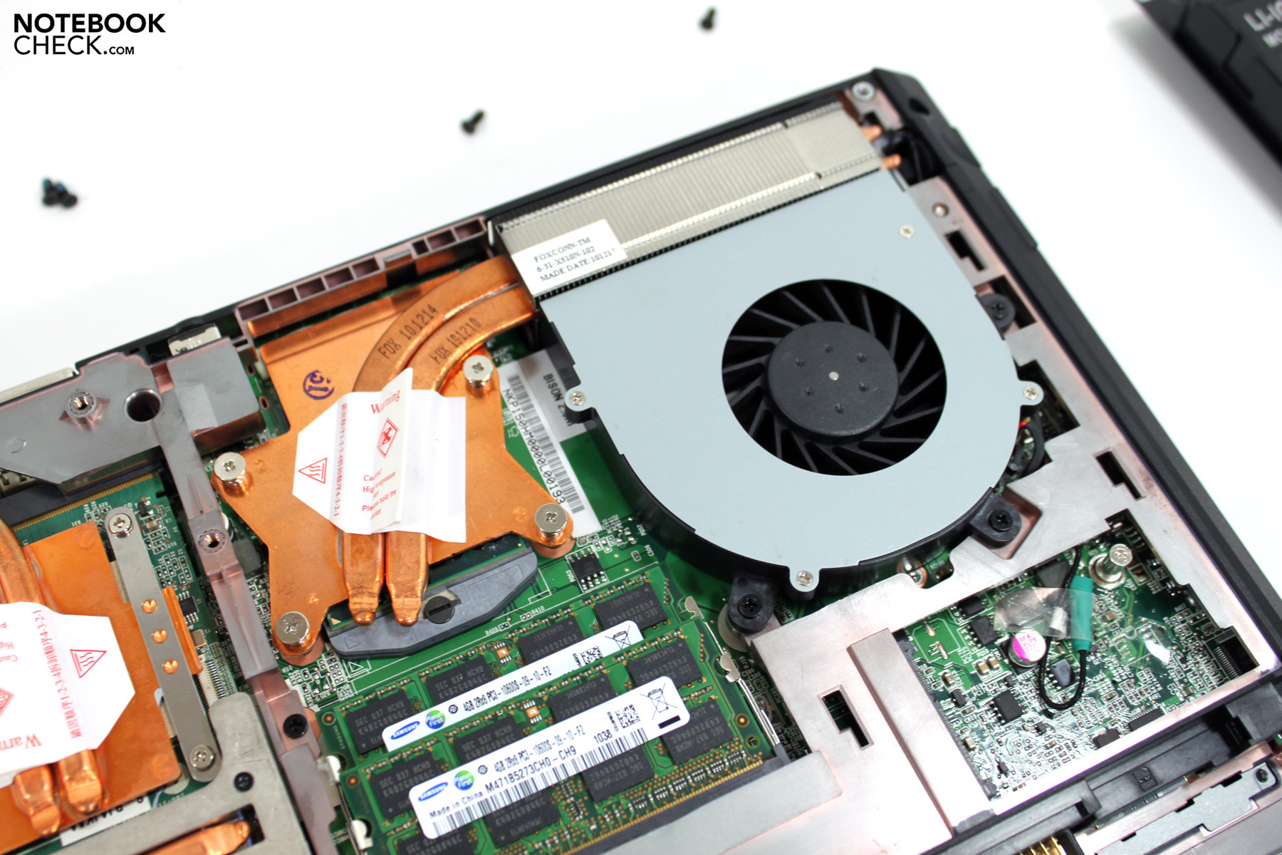 m Inneren des Notebooks herrscht ebenso gelassene Stimmung. Die CPU taktet zu Beginn unseres Stresstest mit knapp 2.0 GHz (Prime95, alle Threads belastet), die Grafikkarte mit 573.8 MHz (Core) bzw. 1150 MHz (Shader) auf Niveau der Vorgaben von Nvidia.