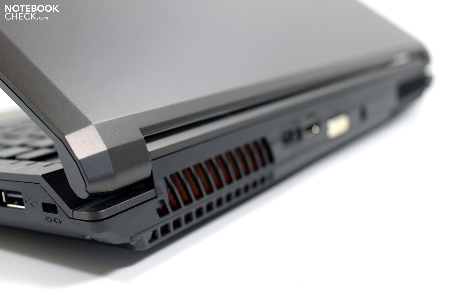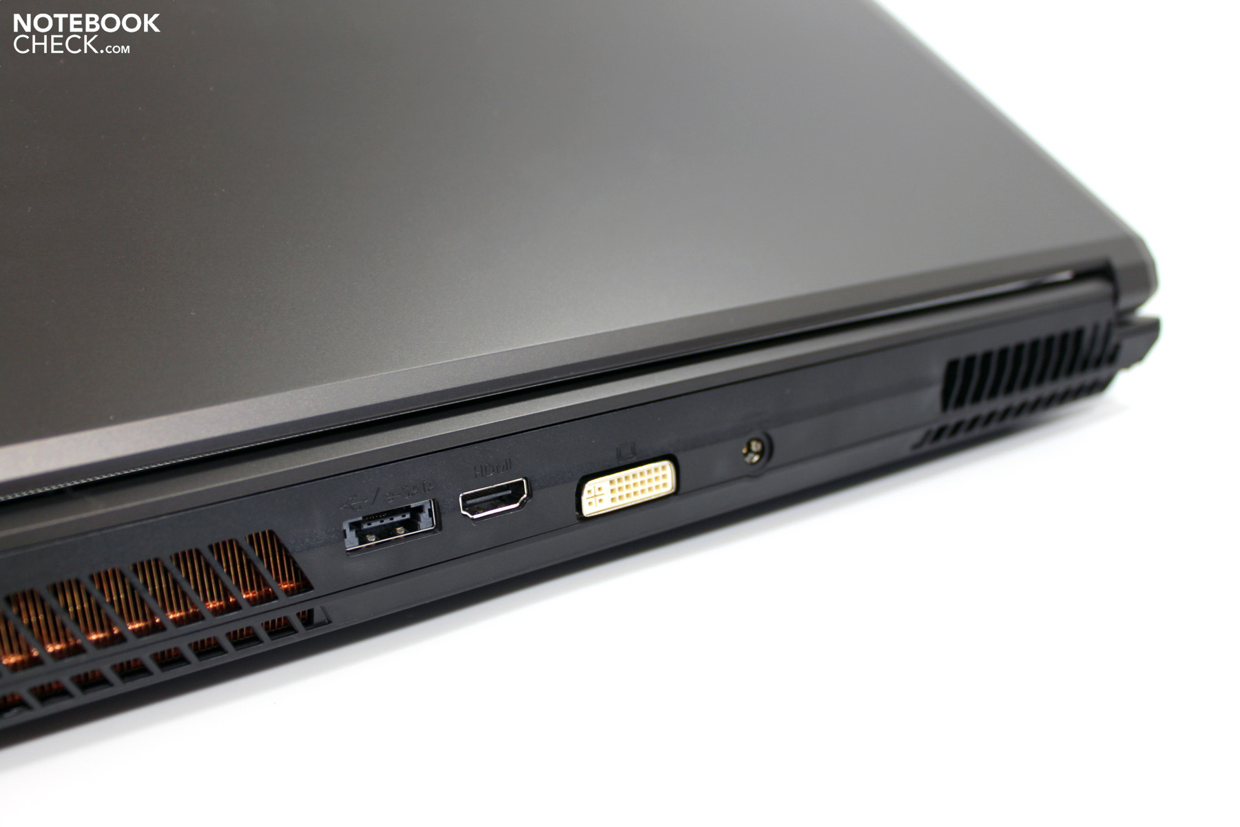 Damit nicht genug. Die Rückseite des Gehäuses nimmt weiter den Netzanschluss, eine digitale DVI-I Schnittstelle sowie einen HDMI-Port als auch eine eSATA/USB-Kombi auf. Unserer Meinung nach ein gelungenes Schnittstellenpaket, das dank der großzügigen Ausstattung auch einen fehlenden ExpressCard Slot verkraften lässt.