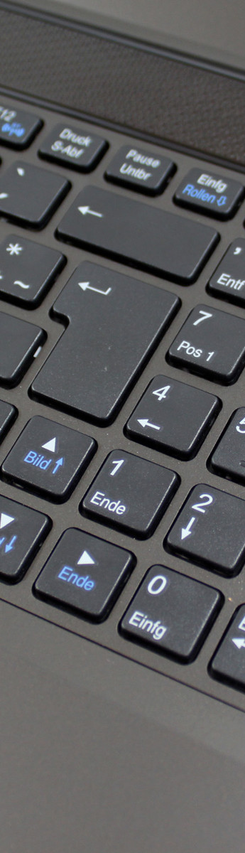 So gefällt beim Schenker XMG P501 das Layout der Chicklet Tastatur, das praktisch allen angebotenen Tasten eine ausreichend große Dimensionierung gestattet. Hinzu kommt der Nummernblock am rechten Tastaturrand, der sowohl bei der Eingabe von Zahlen als auch für das eine oder andere Game hilfreich sein kann. Selbst die oftmals in Mitleidenschaft gezogenen Pfeiltasten bekommen allesamt eine normale Tastengröße verpasst und lassen sich gut bedienen.