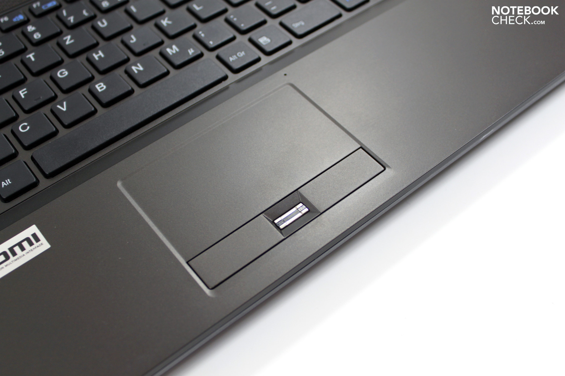 Wenn auch bei einem Gamer sekundär, ist ein Touchpad bei einem Notebook praktisch unverzichtbar. Clevo verbaut hier eine Multitouch-Einheit, die sich aufgrund ihrer geringfügig abgesenkten Position im Bereich der Handballenablagen gut erfühlen lässt. Die Oberfläche des Touchpads zeigt aber dieselbe Silikonbeschichtung wie das umliegende Gehäuse, was wir als etwas problematisch bewerten. Die samtige Haptik an sich gefällt, hinsichtlich Gleiteigenschaften eignet sich das Material aber nur bedingt. Bei der Steuerung des Cursors mit dem Touchpad rubbelte unser Finger gerne über die Oberfläche dahin, was sich in Form eines ruckelnden Mauszeigers samt Sprüngen und Aussetzern bemerkbar machte.