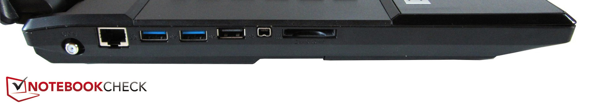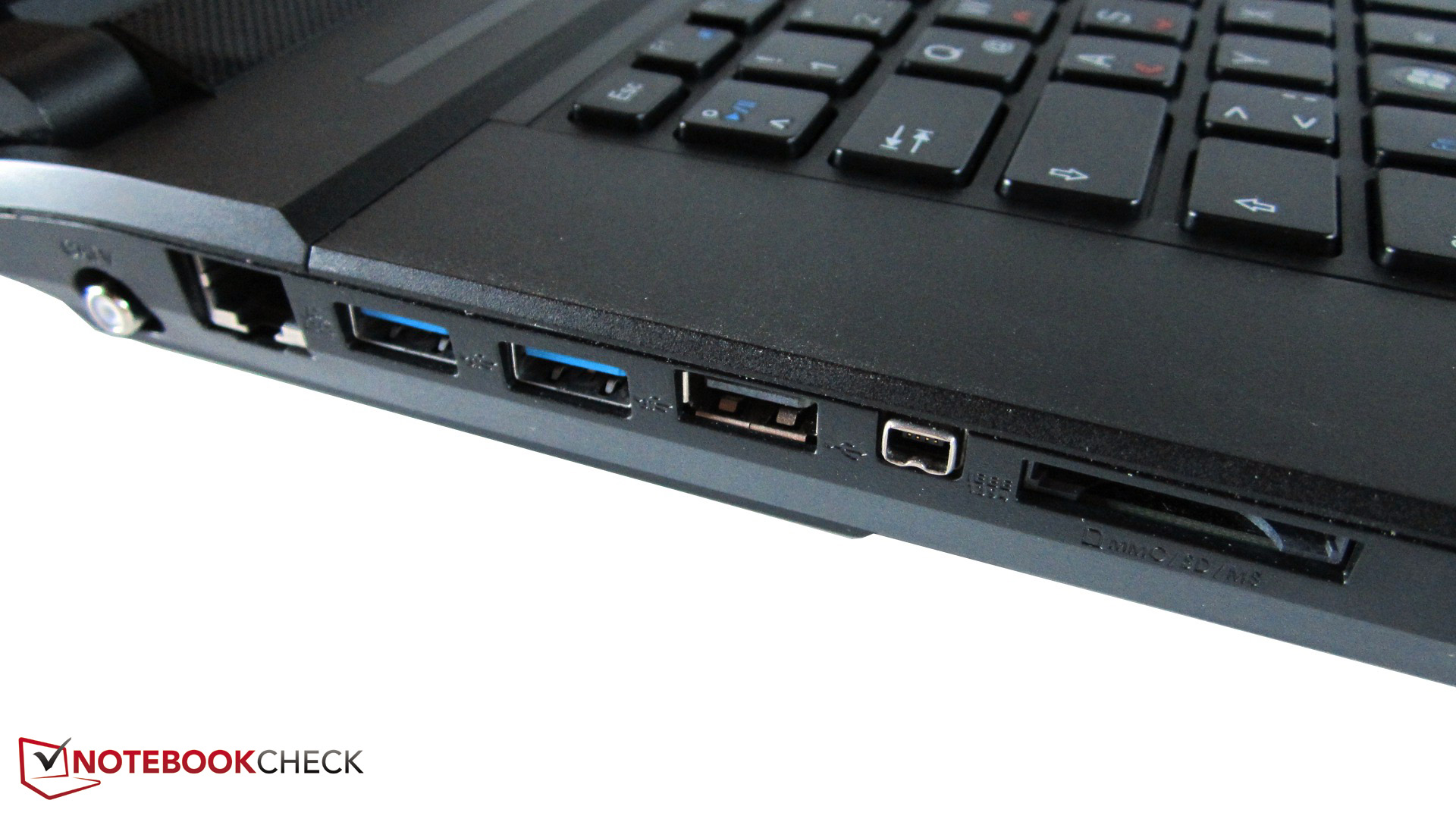 Die üppige Anschlussausstattung ist eine der größten Stärken des XMG P701 PRO. Wenn man einmal vom fehlenden ExpressCard-Einschub absieht, findet der Nutzer alle Schnittstellen, die man heutzutage von einem Desktop-Replacement erwarten kann.