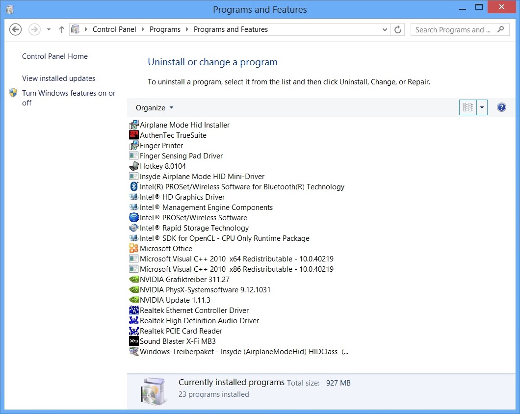 Einer der größten Vorteile der Barebone Anbieter ist die aufgeräumte Windows Installation. Überflüssige Bloatware und Herstellerprogramme, die durch ständige Pop-Up-Meldungen nerven und/oder die System- respektive Startgeschwindigkeit in Mitleidenschaft ziehen, sucht man hier vergebens. Wie der rechte Screenshot belegt, konzentriert sich Schenker auf Hardwaretreiber.