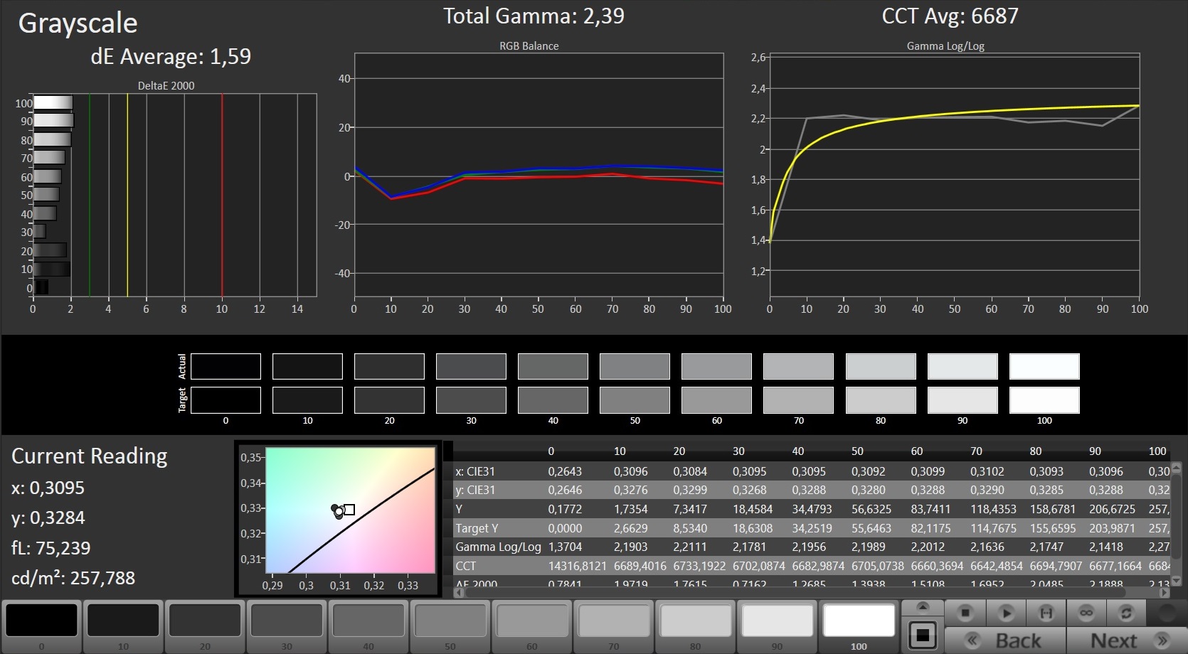 ΔE Greyscale Calman: 2.88 | ∀{0.09-98 Ø5}