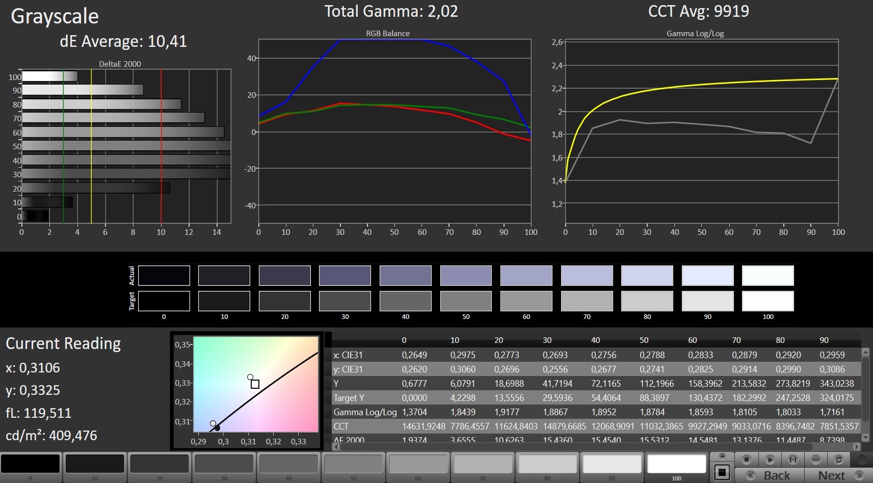 ΔE Greyscale Calman: 10.41 | ∀{0.09-98 Ø5}