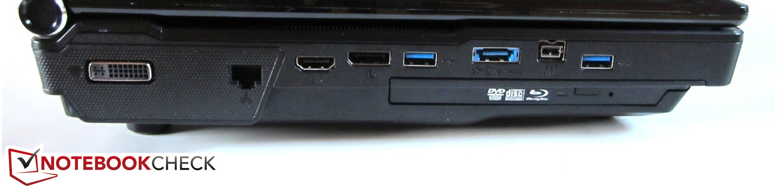 Die üppige Anschlussvielfalt gehört zu den größten Stärken des XMG U702. Während die meisten Gaming-Notebooks höchstens vier USB-Ports enthalten, ist das P570WM-Barebone mit fünf USB-Ports bestückt (3x 3.0 & 2x 2.0). Vier Audio-Buchsen (Mikrofon, Kopfhörer, Line-In, S/PDIF) und drei digitale Bildausgänge (DVI, DisplayPort, HDMI) verdienen ebenfalls Lob. Auch eSATA und FireWire sind mit an Bord. Hinzu kommen ein Kensington Lock, ein RJ-45 Gigabit-Lan-Port, ein 9-in-1-Kartenleser und ein ExpressCard-Einschub. Der Antenneneingang des alten Modells ist dem Rotstift zum Opfer gefallen.