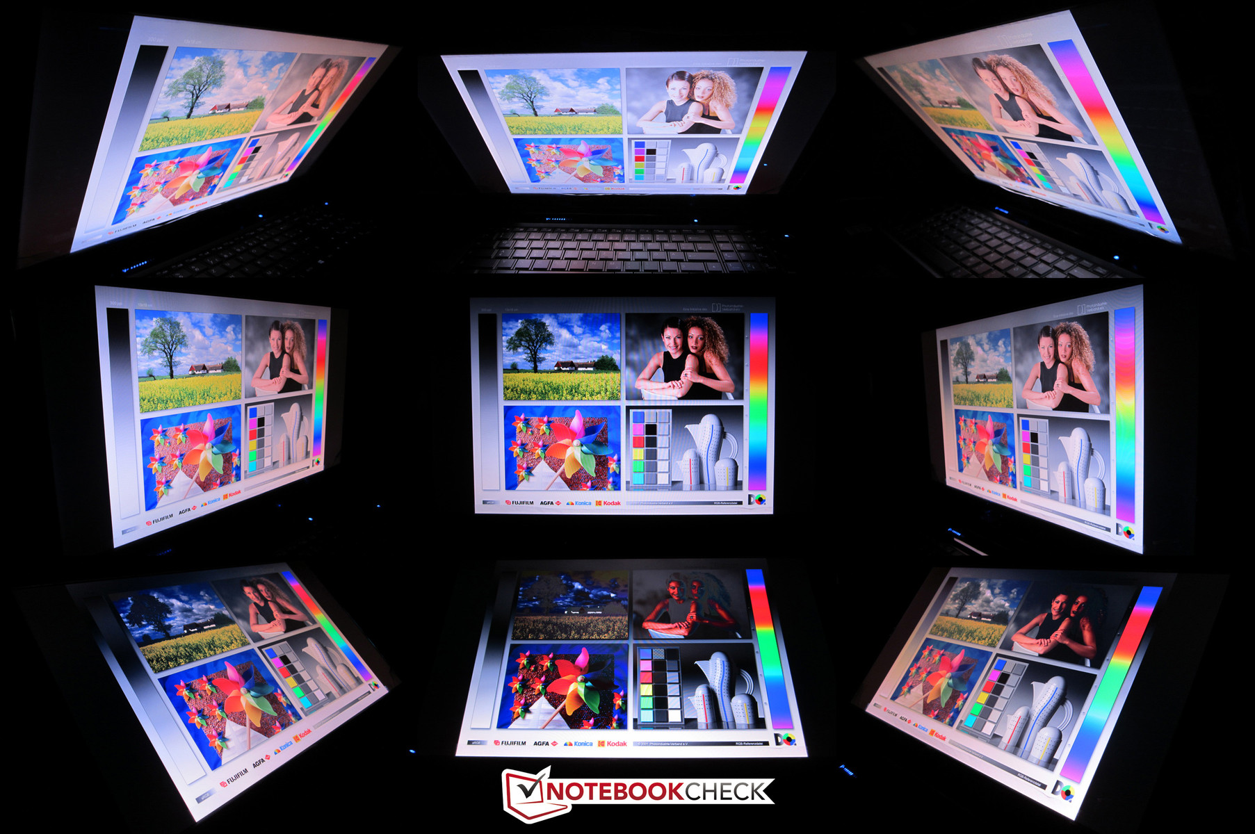 Die Blickwinkel des Wide-Gamut-Panels sind überdurchschnittlich hoch. Bis auf einen rötlichen Touch bleibt das Bild horizontal auch aus größeren Winkeln stabil. Obwohl sich die Beleuchtung im vertikalen Bereich wesentlich schneller ändert, übertrumpft das XMG U702 locker die meisten Kontrahenten. Falls Sie sich wundern, warum das Display trotzdem »nur« 80 % bekommt: Aufgrund der hohen Reflexionsanfälligkeit werden Glare Panels bei uns mit einem Punktabzug von 7 % bestraft.