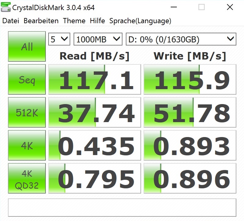 Die Performance des Cardreaders ist mehr als ordentlich. Zwar reizte das XMG U716 nicht ganz die theoretische Power unserer Testkarte aus (Toshiba Exceria Pro SDXC 64 GB UHS-II), 204 MB/Sek beim sequentiellen Lesen und 156 MB/Sek beim Verschieben von Fotos verdienen jedoch Respekt. Manche Notebooks scheitern bereits an der 100-MB-Marke.