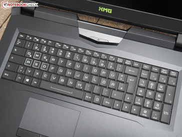 Das Keyboard kennen wir bereits von anderen Modellen aus der U-Reihe. Im Gegensatz zum XMG P706 sind die Tasten nicht per Zwischenraum abgetrennt, sondern »kleben« direkt aneinander. Mit welchem Design man besser zurechtkommt, hängt sehr stark vom Nutzer ab. Qualitativ nehmen sich die beiden Keyboards kaum etwas. Zwar klappert das Chiclet-Modell etwas stärker, Druckpunkt, Anschlag und Feedback sind jedoch ähnlich gut.