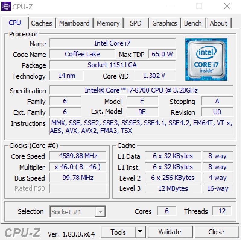 Im Testgerät werkelte mit dem Core i7-8700 ein High-End-Modell, das zwar keinen freien Multiplikator bietet, dafür jedoch per Hyper-Threading 12 Threads parallel stemmen kann. 12 MB L3-Cache (6 MB @Core i7-7700HQ) sind ebenfalls nicht von schlechten Eltern. Dank der Turbo-Boost-Technik wird unter Last zudem der Takt über das Basislevel (in diesem Fall 3,2 GHz) angehoben.