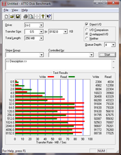 Wir beginnen die praktischen Benchmarks mit dem Kopiertest des AS SSD. Hier werden drei Einzeltests mit Spiele-, Anwendungsdateien und einer ISO Datei durchgeführt. Da bei diesen Tests Caching keine Rolle spielt, kann der SLC NAND Speicher keine Vorteile bringen. Im Vergleich zu High-End SSDs liefert die Seagate nur in etwa die halbe Geschwindigkeit (maximal). Je voller die Festplatte (UL50VF z.B. 1/3 voll), desto länger dauern die Kopieraktionen.