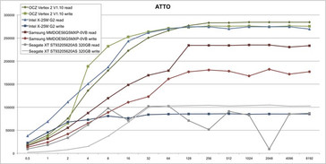 Bei den synthetischen Benchmarks und nur einem Durchlauf liegt die Performance der Seagate XT Serie auf Höhe einer ganz normalen Notebookfestplatte. Der schnelle SSD Cache kann in diesem Szenario nicht greifen, da sich die Zugriffsmuster nicht wiederholen. Für eine 2.5" Notebook Festplatte sind die ermittelten Werte trotzdem sehr gut und mit schnellen Laptop-Platten vergleichbar.