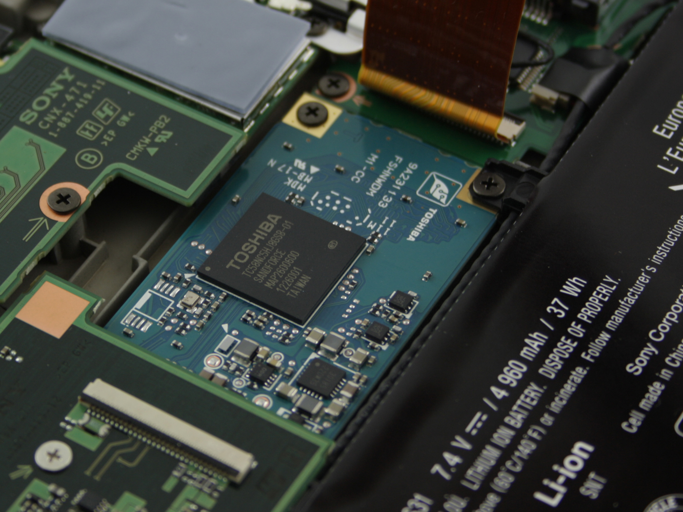 Als Festspeicher nutzt Sony ein 128-GB-mSATA-Modul von Toshiba (THNSNS128GMCP). Die SSD ist an den 6-GB/s-SATA-Port angebunden und deshalb optimal für hohe Lese- und Schreibwerte, sofern der SSD-Controller mitspielt. Wir prüfen die Performance im Abschnitt zum Massenspeicher. Als Arbeitsspeicher verträgt das Duo 11 mit seinen zwei Speicherbänken bis zu 2x 4.096 MB (Testgerät: 2x 2.048 MB aufgelötet, Dual-Channel).