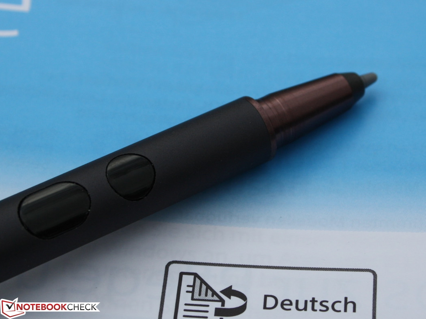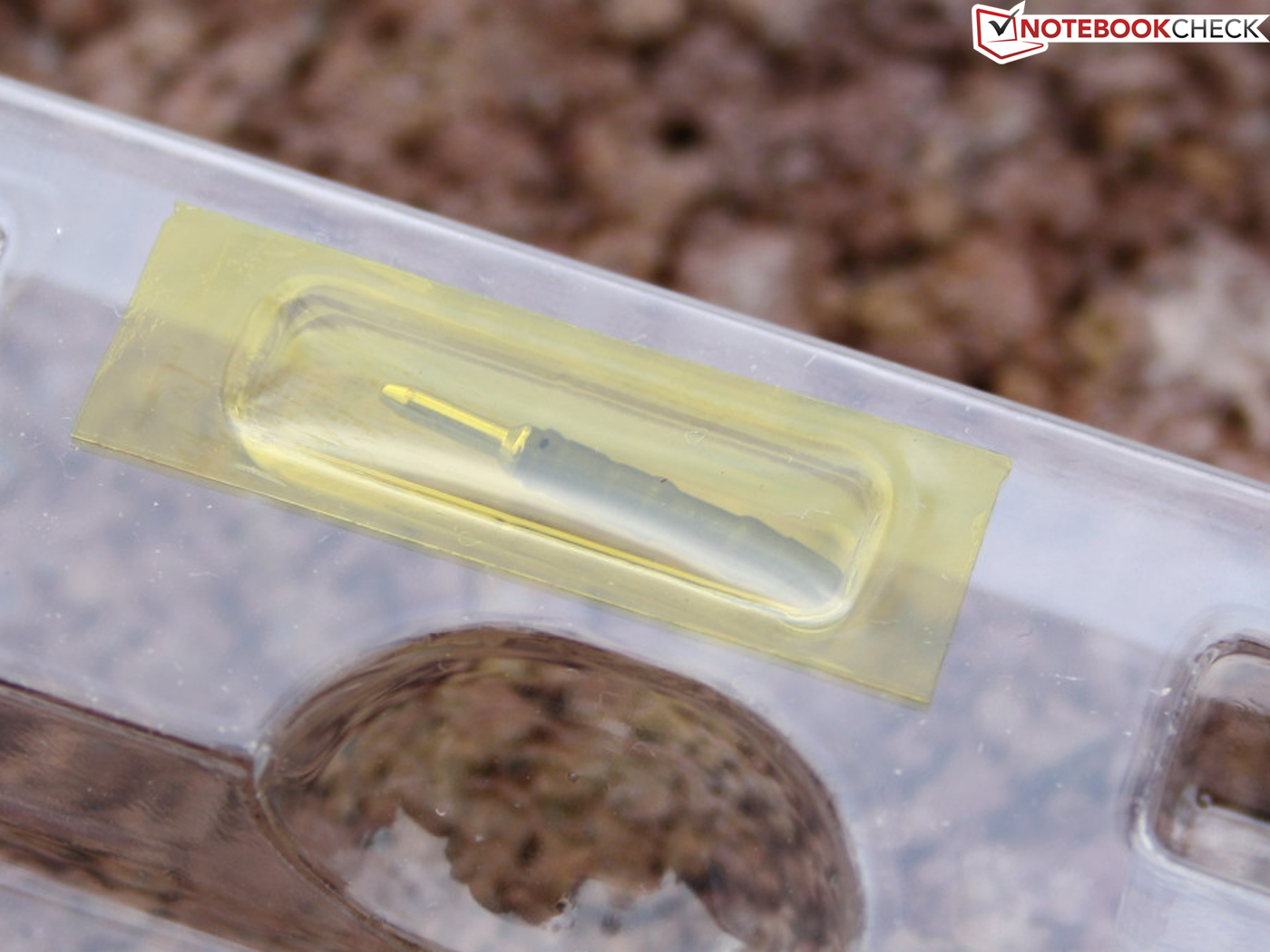 Für uns zeigen sich Stylus und Full HD als perfekte Kombination. Durch die hohe Punktdichte auf dem 11,6-Zoller fällt die Auswahl mit dem Finger, speziell in kleinen Menüs und Dateistrukturen, naturgemäß schwer bzw. der Nutzer fühlt sich unsicher. Der Stift sorgt aber nicht nur für die gewünschte Punktlandung, sondern er ist auch das Tool für handschriftliche Notizen oder künstlerische Aufgaben. Der Stylus liegt gut in der Hand (Gewicht: Aluminium + Batterie), kann aber nirgends im Gerät versenkt werden (Ablage im optionalem Akku-Slice). Zumindest gibt es eine Öse zur Befestigung mit einer Schnur.