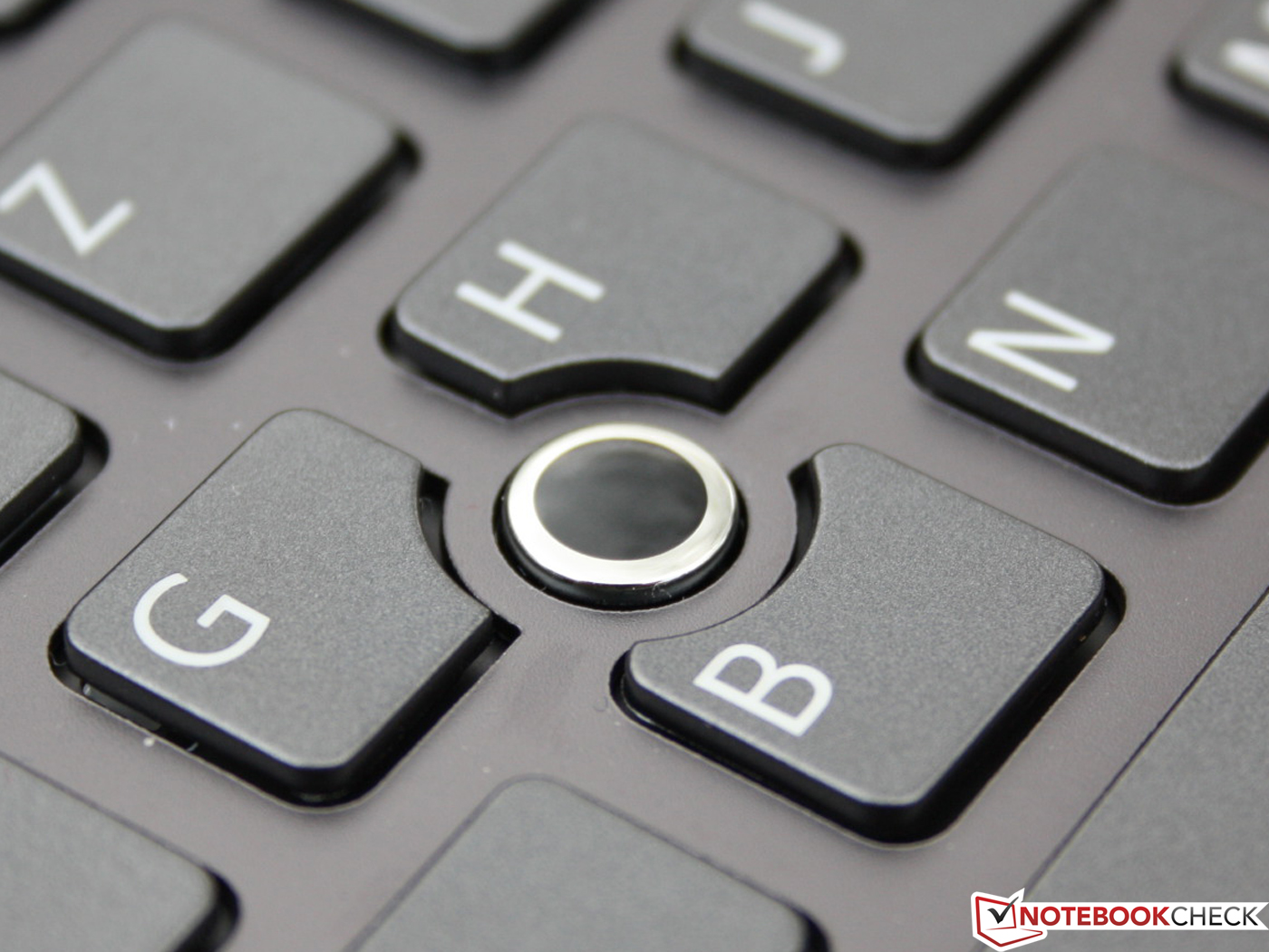 Touchpad oder Point-Stick? Die Kombination aus drei griffigen, stumpfen Tasten und einem Pointer kann das klassische Touchpad bestens ersetzen, sofern es überhaupt daran mangelt. Auch Touchpad-Freunde werden sich daran gewöhnen, denn im Gegensatz zu den meisten Point-Sticks (z. B. HP- oder Lenovo-Business-Notebooks) ist die Oberfläche sehr glatt, und der Cursor wird durch „Darüberwischen“ bewegt. Bei normalen Pointern ruht der Finger auf einer rutschfesten Oberfläche. Zweites Plus: Ein Doppelklick auf den Pointer ist möglich.