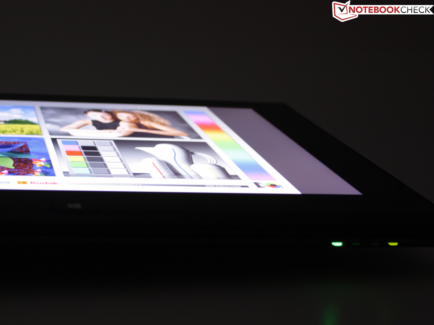 Die Luminanz erreicht mittig einen famosen Wert von 417 cd/m². Gäbe es da nicht die Drosselung im Akkubetrieb (182 cd/m².), dann wäre das jetzt ein Grund zum Jubeln. Die Helligkeit genügt zwar immer noch bei Weitem für Innenräume, sobald aber helles Sonnenlicht auftrifft, geht die Sichtbarkeit des Desktops verloren. Gerade weil die Glare-Type-Anzeige stark reflektiert, hätte es dem Nutzer überlassen sein sollen, wie stark er seine Hintergrundbeleuchtung bemüht. Das XPS 12 Convertible macht es richtig.