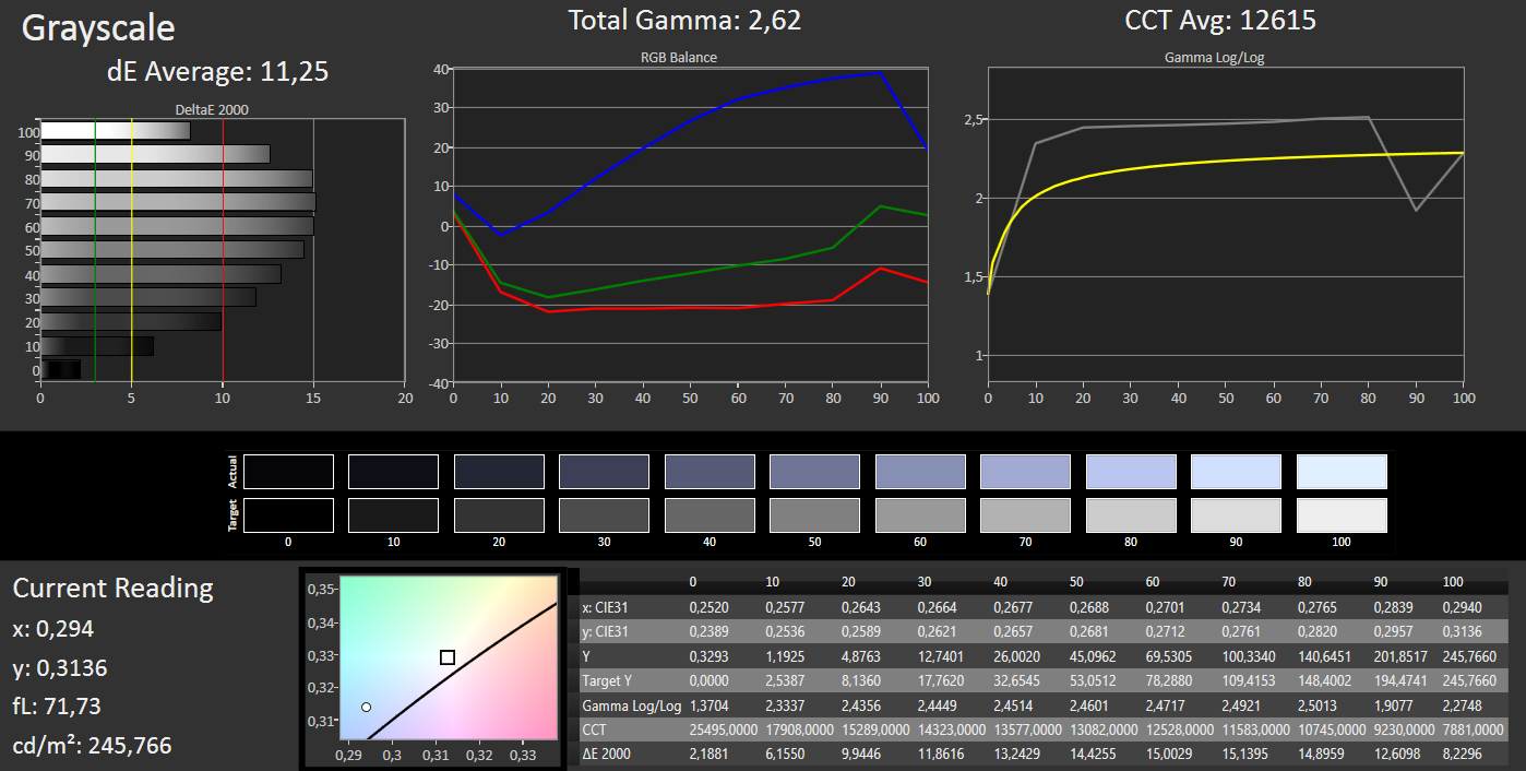 ΔE Greyscale Calman: 11.25 | ∀{0.09-98 Ø5}