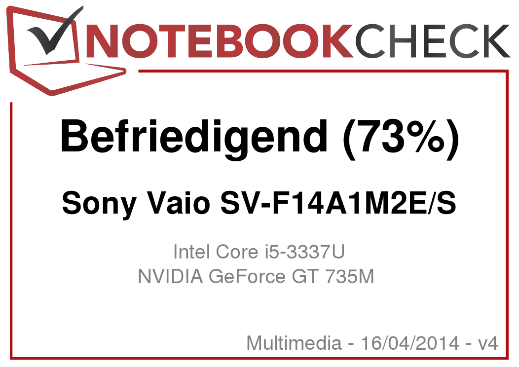 Mit dem Vaio Fit SV-F14A1M2E/S hat Sony ein über weite Strecken gelungenes Multimedia-Notebook auf den Markt gebracht, welches mit einigen interessanten Ausstattungsmerkmalen aufwartet. So offeriert derzeit kaum ein anderer Hersteller ein vergleichbar günstiges Modell mit NFC-Funk und Hybrid-Festplatte, auch wenn letztere nur bedingt eine vollwertige SSD ersetzen kann. Dennoch bietet das Vaio eine grundsolide Performance für die meisten Anwendungen und Spiele. Wer sich mit mittleren Einstellungen zufrieden gibt, kann auch aktuelle Titel in flüssigen Frameraten genießen.